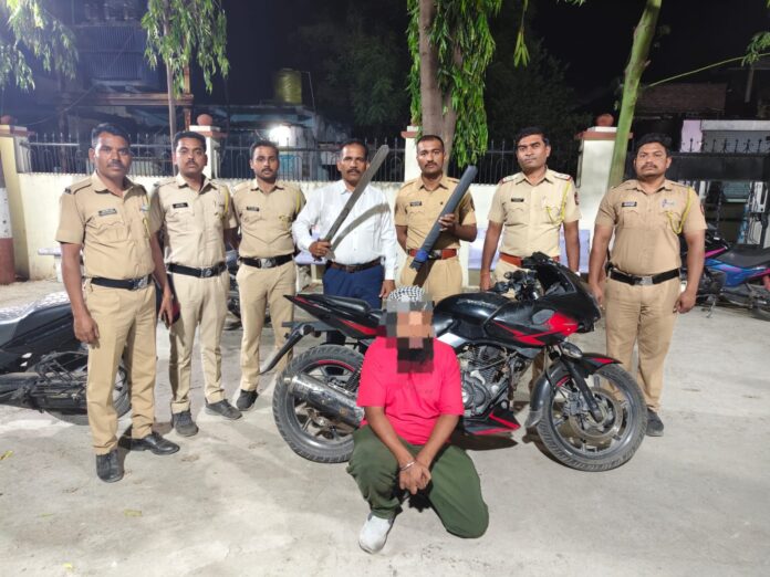 नांदेड| शहरात अवैध शस्त्र बाळगून फिरणाऱ्या एका सराईत आरोपीस स्ट्रिट सेफ्टी पथकाने ताब्यात घेत मोठी कारवाई केली आहे. आरोपीकडून एक लोखंडी तलवार व पल्सर मोटारसायकल असा एकूण 71,500 रुपयांचा मुद्देमाल जप्त करण्यात आला आहे.
