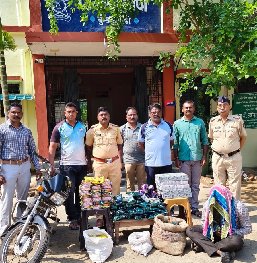 या कारवाईत M Scented Tobacco Gold, SR सुगंधित पान मसाला, Royal Zafrani Zarda, Bombay Royal पान मसाला अशा विविध ब्रँडचा साठा तसेच MH 26 S 5207 क्रमांकाची मोटारसायकल असा एकूण 1,08,690 रुपयांचा मुद्देमाल जप्त करण्यात आला.