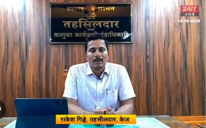 केज/माहूर| केज तालुक्याचे तहसीलदार राकेश गिड्डे यांचे आज सकाळी झालेल्या भीषण कार अपघातात दुर्दैवी निधन झाले. लातूर-अंबाजोगाई महामार्गावरील रेणापूर फाट्याजवळ हा अपघात घडला.