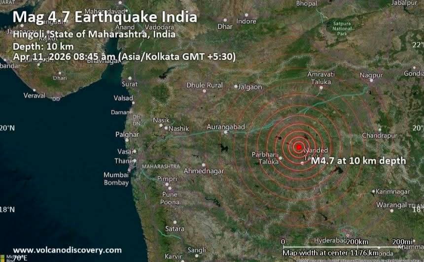 नांदेड जिल्ह्यात भूकंपाचे सौम्य धक्के; रिश्टर स्केलवर 4.7 तीव्रता नोंद